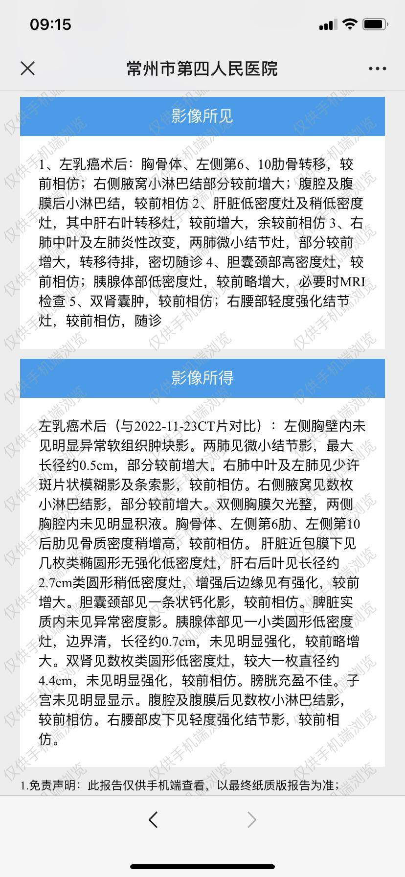 妈妈这次因为肿标升高,做了检查。原本以为只是肝部肿瘤增大,没想到报告出来肺部多发结节也有增大,肺部结节从18年放疗后就一直有,现在突然说有增大,但又显示最大的大小和之前一样7mm,健侧腋窝也有淋巴结增大,超级担心这两个转移。这次是继双靶耐药后吡咯替尼也耐药了,只吃了4个月就耐药了,医生也说药会越来越少,心里真的不是滋味儿。希望我妈妈能有奇迹!