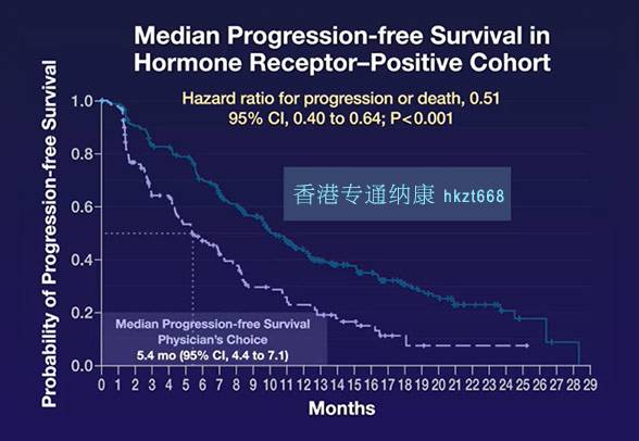 结果显示,与化疗组相比,A组患者(DS-8201)的无进展生存期更长(10.1个月vs5.4个月),总生存期也更长(23.9个月vs17.5个月),进展风险降低50%(HR:0.50,P≤0.001)0,