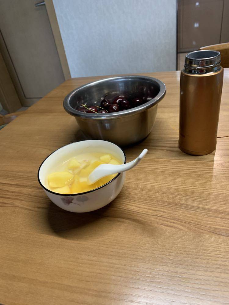 从公园回来,去超市取了菜,回来煮了一碗苹果,橙子🍊水。打开手机,听专家讲座。<爱自己,才能有更多的时间去爱你的家人>。