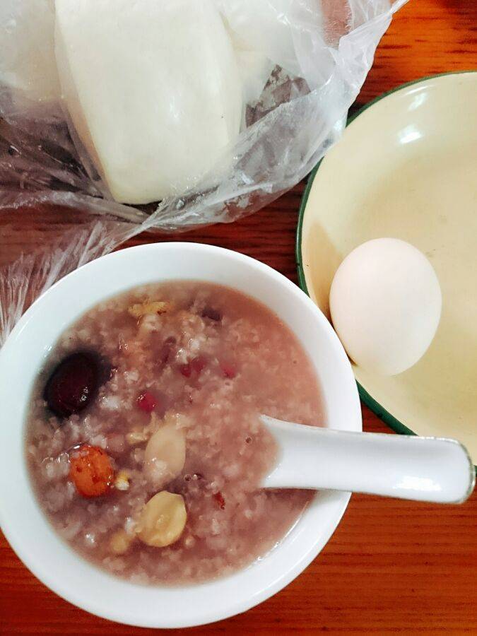 圈里的姐妹早啊,今天早餐是粥 馒头 鸡蛋。粥里有红豆,莲子,北芪,红枣,薏米。没有放糖了,红枣本身有点甜味。