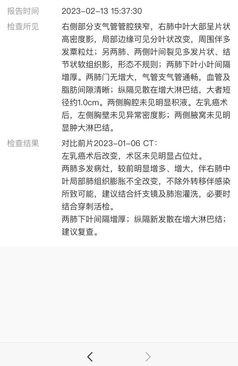 今天泼尼松吃完最后一天,也迎来了最新CT结果。很不理想啊😰😰😰😰😰😰又是增大增多,又是转移伴感染的,还有肺不张…… 主治打来了电话,听着声音又严肃又沉重的告诉我,该上治疗了。