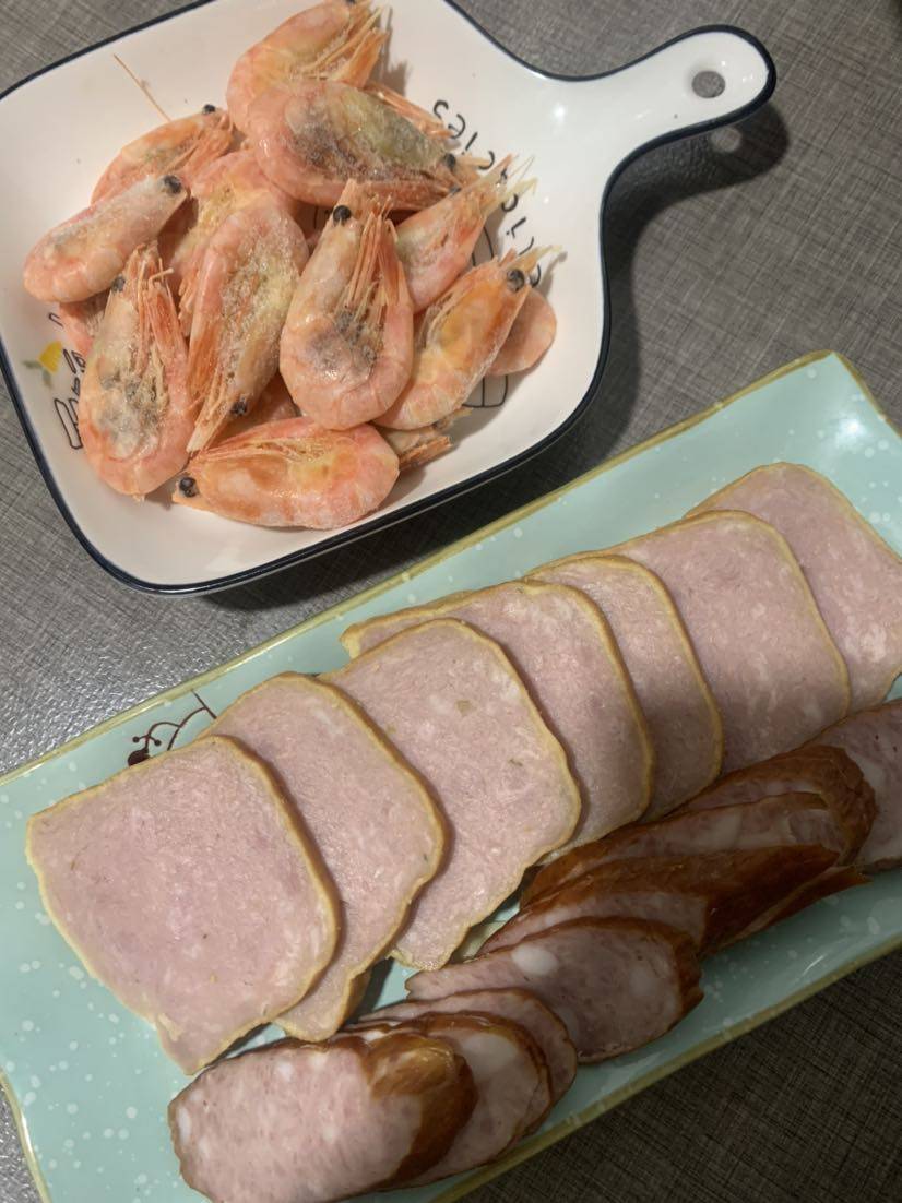 甜虾和蛋卷红肠