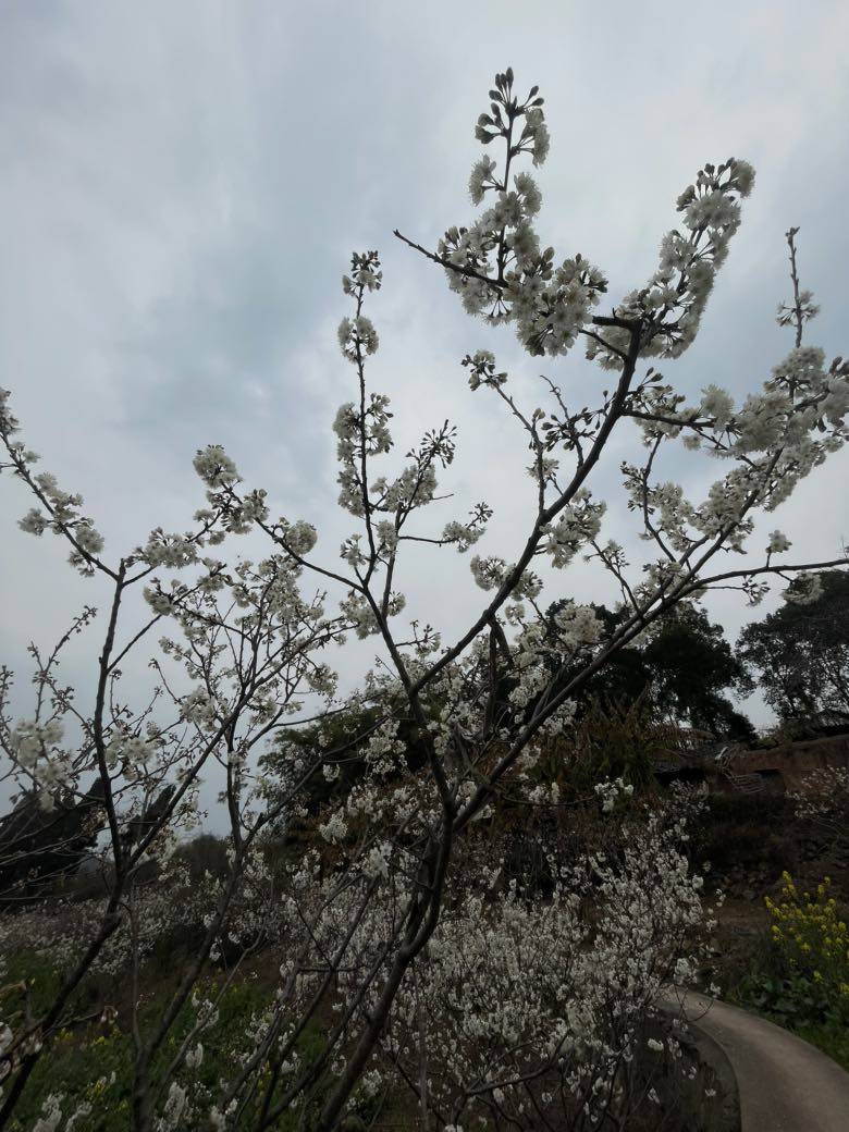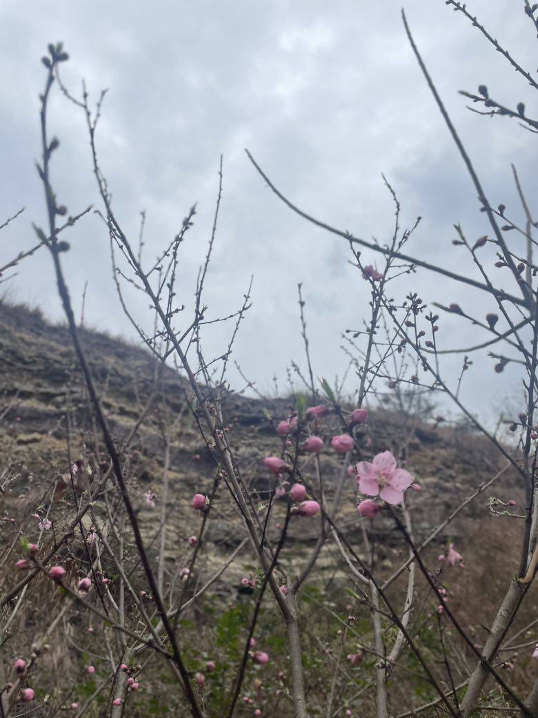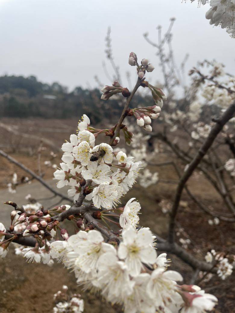 既然花期已到,怎么也要抽空去郊外看花踏青。洁白的樱桃花漫山遍野星星点点已盛开,还有零星的艳红的野桃花也开了两三朵。没有晴朗的天空做背景,拍的照片不太好看。在这寒冷的春天里,花儿或含苞待放或吐露芬芳,尽情展示她的美丽,吸引勤劳的小蜜蜂,吸引更多的人来欣赏这美丽春色,春天来啦!