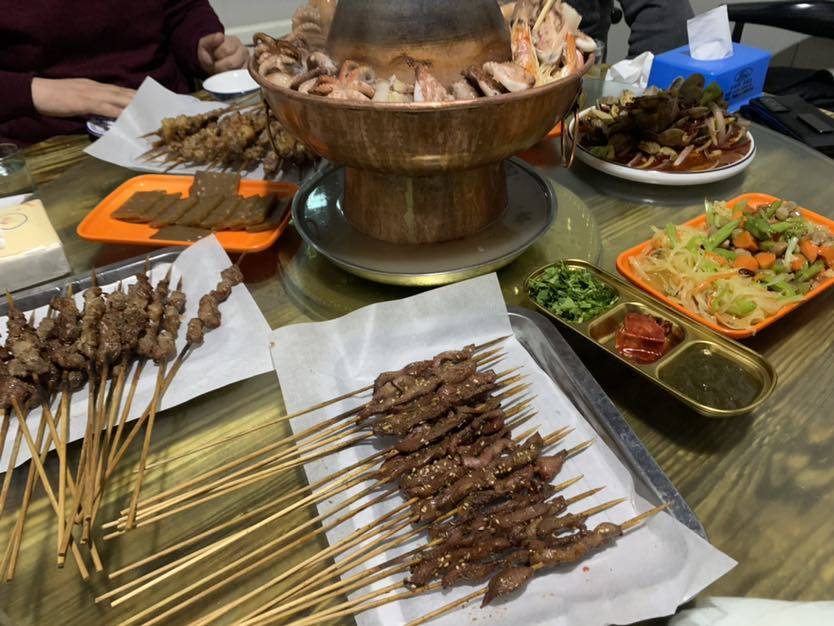昨天晚上同事请道长吃饭,我和老王作陪。山海关荤锅和肉串