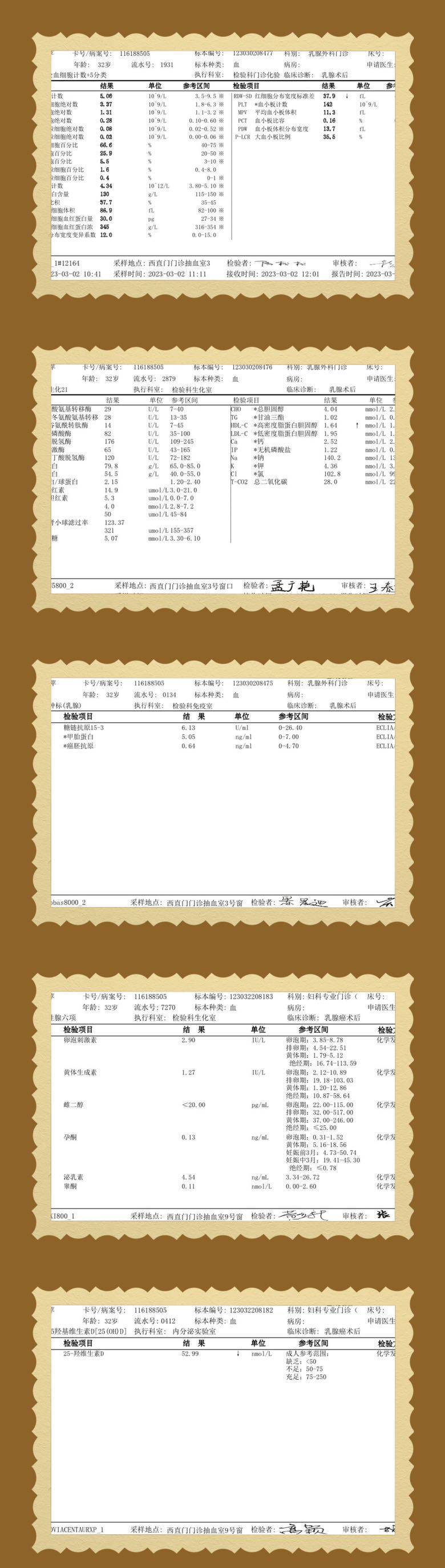 就在所有检查做完的几天后,3.18下午好像来了点例假不知道是例假还是不规则出血,一点点,纸上有,3.19一天,3.20一天,3.21没有了,心里还是有些担心,去了妇科,查了性激素六项,和妇科B超,因为怕是激素变化,是不是没绝经,B超和抽血都是正常的,所以也没有管了,看看下个月情况。