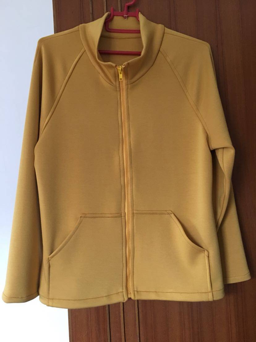 最近给老公做了一套棒球服,又做了二件姜黄色的休闲春装和二条直筒裤,和姐姐一人一套,大家帮我参考一下,黄色上衣要不要贴LOGO