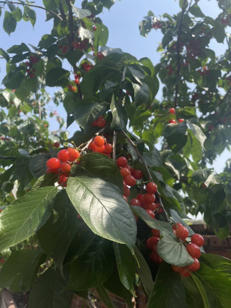 我家一株树的不够,带去亲戚家几十株结满了樱桃的树上摘,一人一个提篮,树下随意吃树上任意摘,好过瘾。今年雨水太少,樱桃口味不太好,没吃多少大家都说牙齿酸了。一家人提两篮回家。