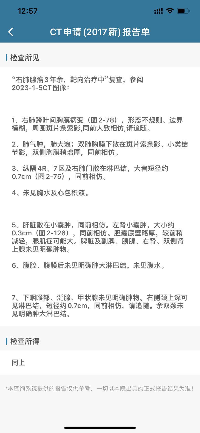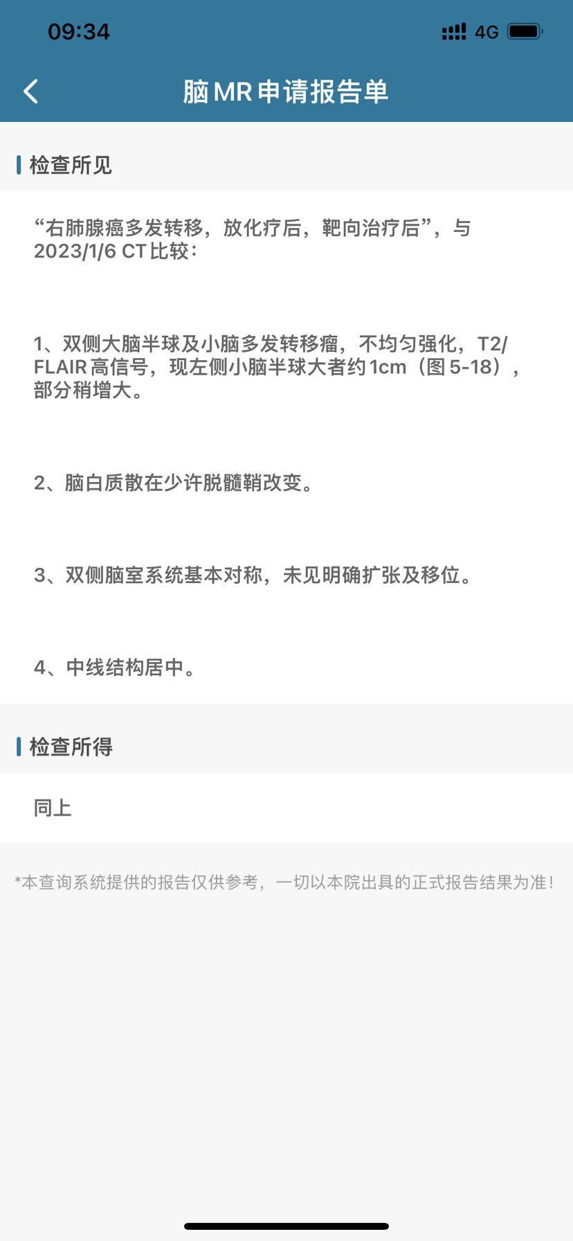 跌跌撞撞近四年了,吉非替尼22个月,脑部有转移后更换奥西替尼也22个月了,从发现脑转1.0吃一个月后复查0.4,三个月后0.7,在三个月后1.0,22年5月份头部做了伽马刀,当时疗效还可以,降至0.8基本稳定,9月份复查有增大1.0,医生建议打三次贝伐,23年1月复查稳定,4月底复查又增大至1.0,还伴随脑蛋白质脱鞘。也不知是伽马刀后遗症还是锻炼不够多,但是总感觉记忆力有点下降,忘事太严重,管他呢,随他去吧,有质量的生活就很好了