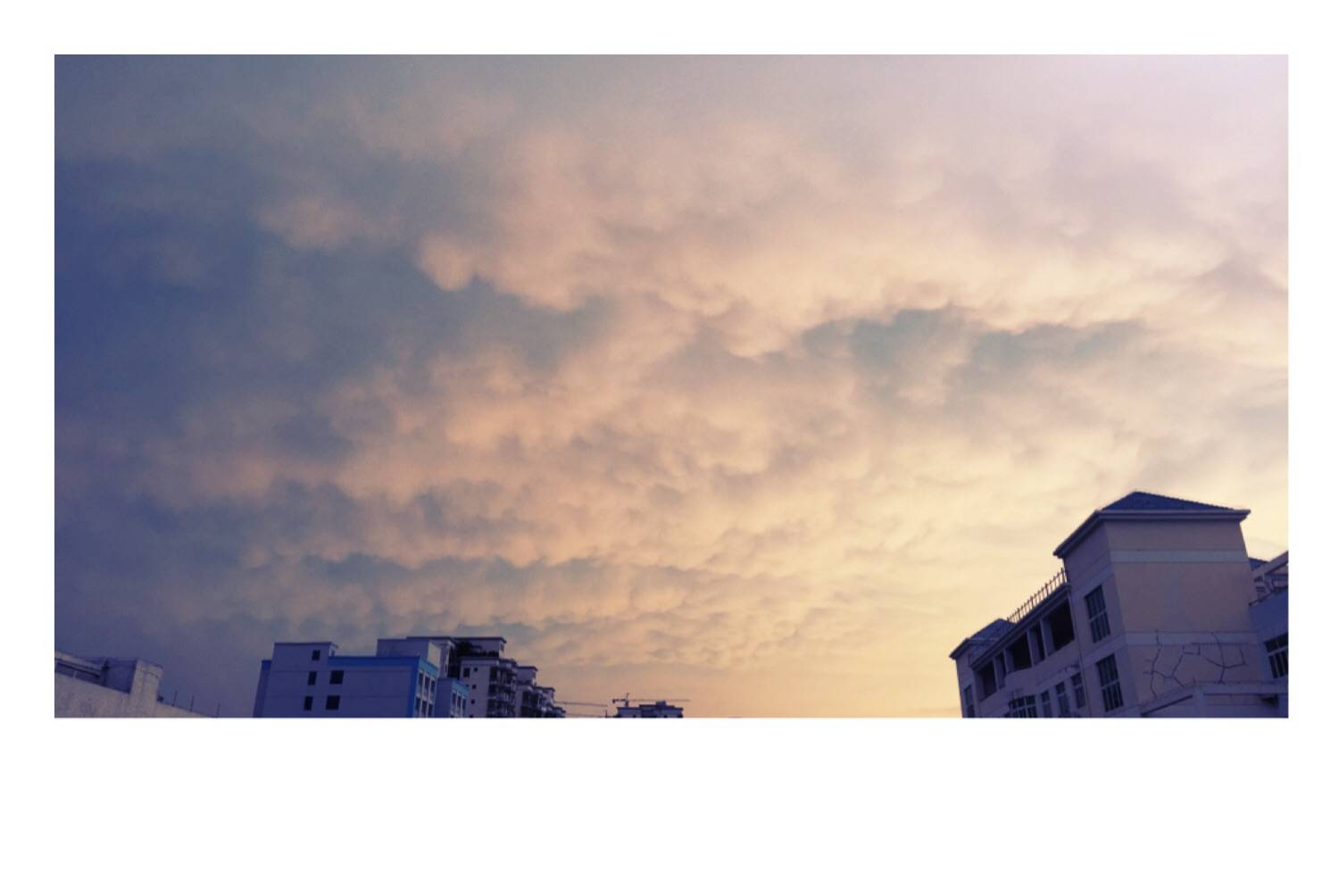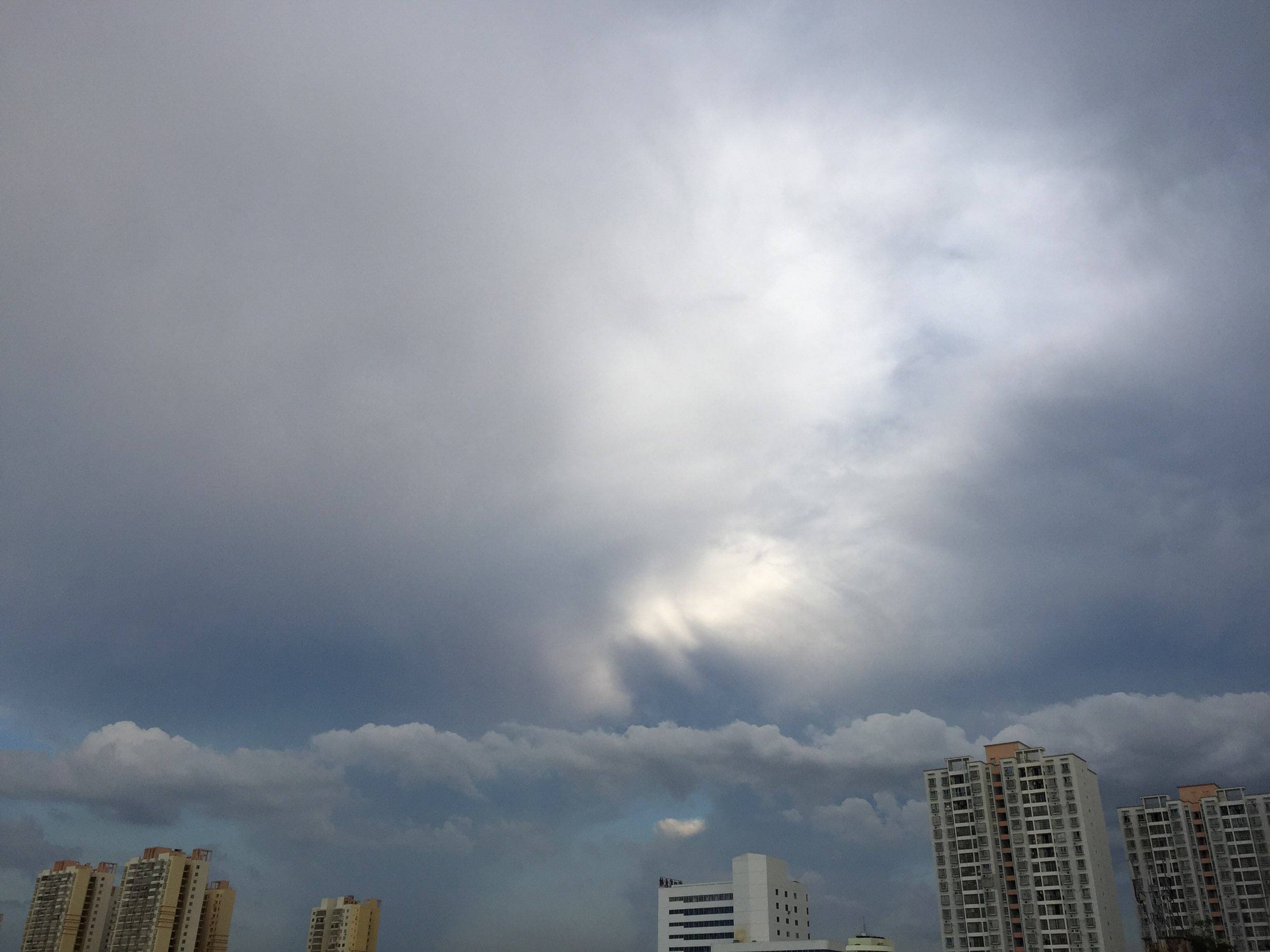 这棉花絮的天空是为了下雨前覆盖的,左边的天空下着雨,右边的天空竟然出🌞,没一会云也跑啦