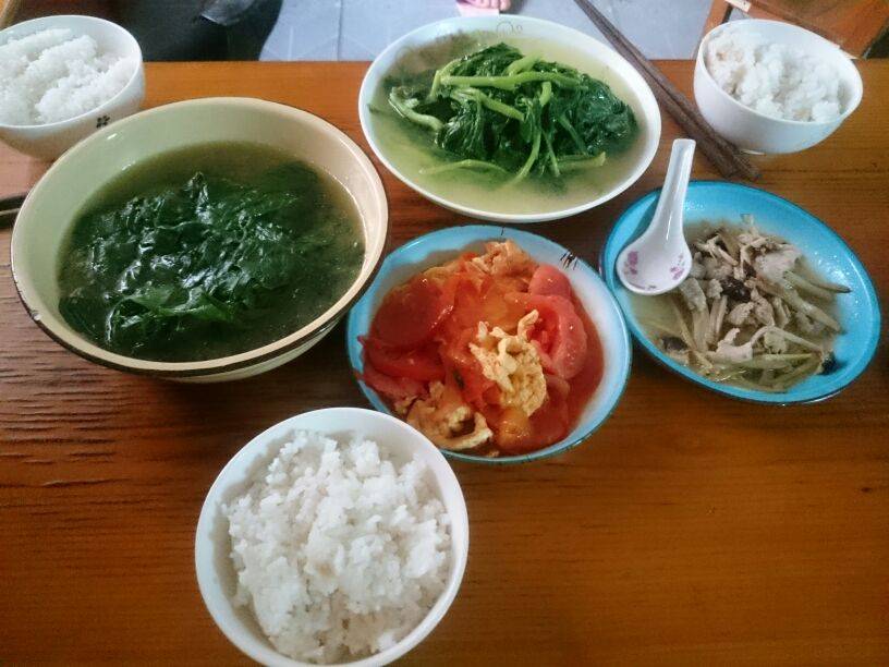 豆角叶汤,青菜汤,番茄鸡蛋。哈哈,今晚很斋啊多吃青菜少吃肉,还是有你们很想吃的玉米