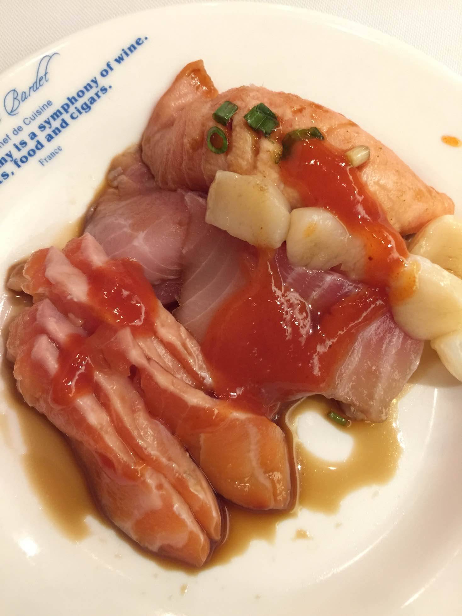 我的天呐,看着就想吃。。。你还吃鱿鱼?还吃虾??生鱼片???唉妈呀,我都不敢吃