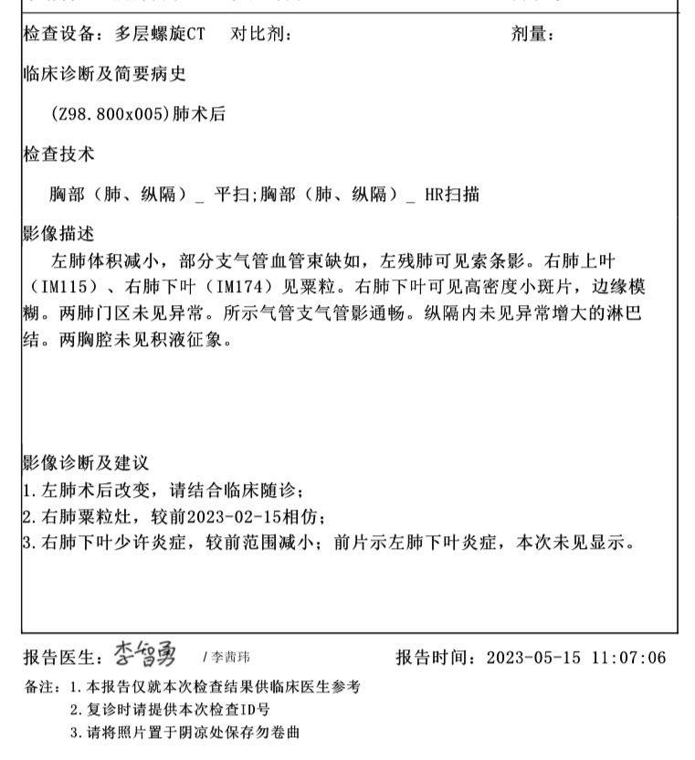 还有手术前的各种检查其实很全,当时肾都很正常,术后因为总说胸背疼,几乎又做了一遍各种检查,发现了一个肾囊肿,长得还挺快…