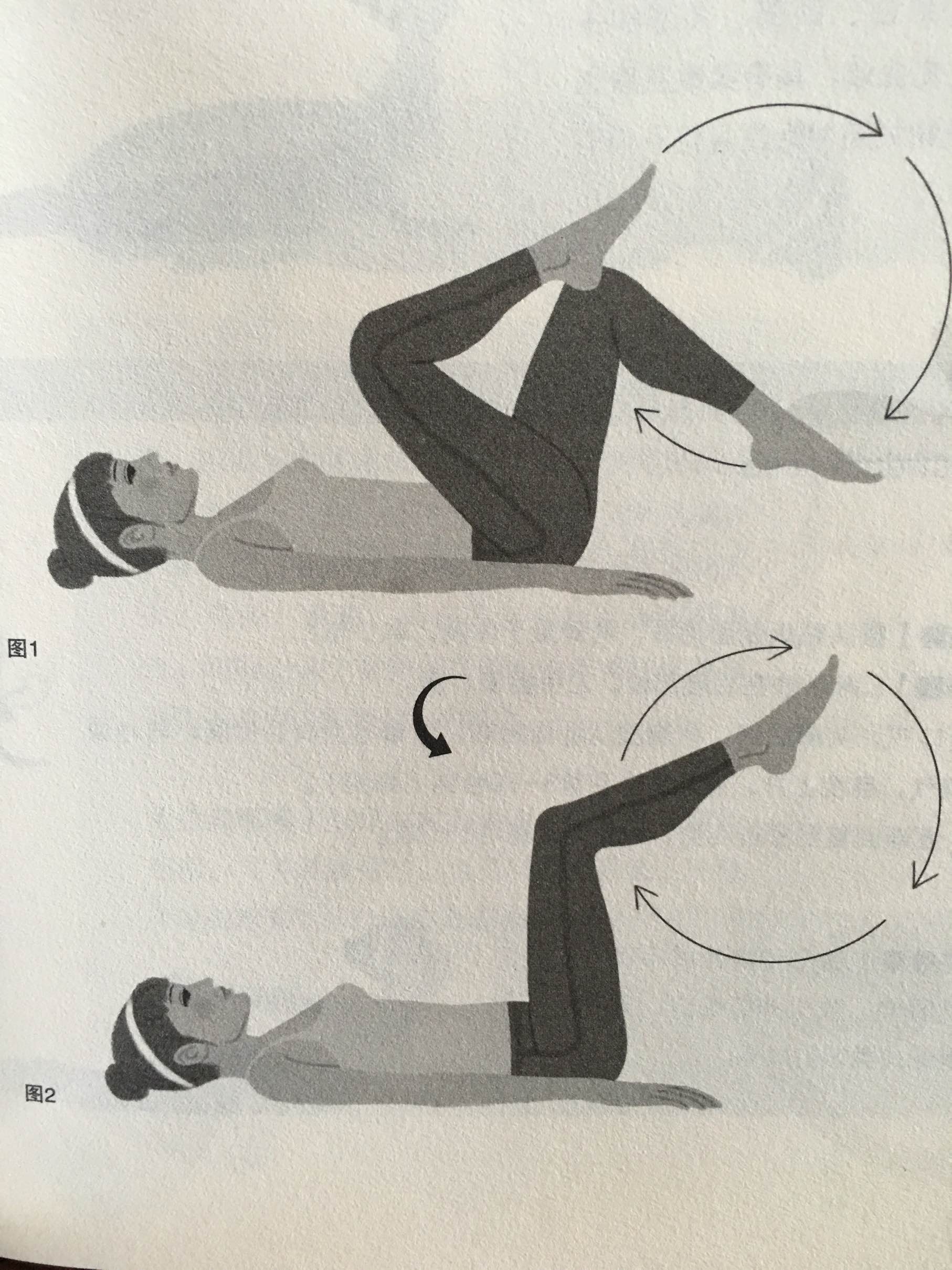 圈子逐渐踩大,保持颈肩放松,下巴稍微内收。重复20~40次后,将膝盖收到胸前,休息片刻。
