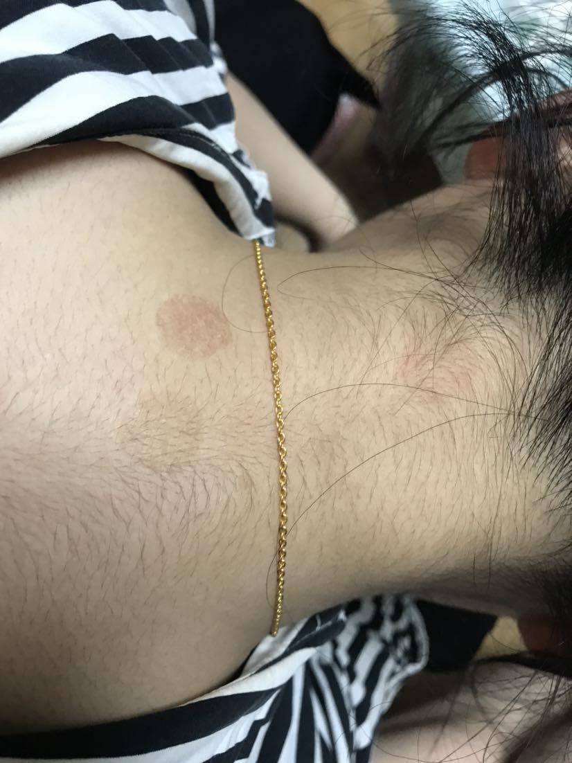脖子后边儿突然就多了两个圆圆的黑圈,不疼也不痒,这是什么?