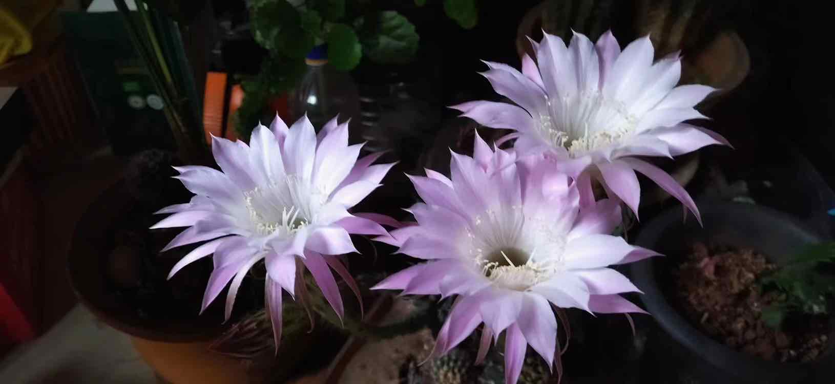 仙人球花开的好漂亮,一直说云南四春如春,想必花花草草随便养吧