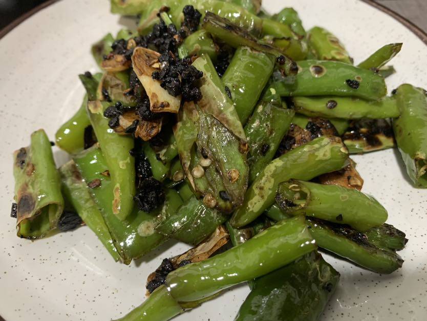 午餐🥣豆豉青线椒孜然辣椒粉炒韭菜