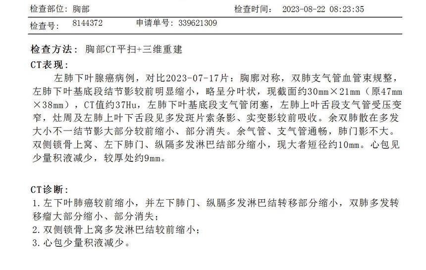 一眼眼的功夫阿来替尼已经吃了快一个月了,阿来待我极好,效果不错,自己的心态也从确诊时焦虑的心和坐立难安的症状到现在偶尔想起才会心烦,感觉自己进步很多,最舍不得的就是妈妈,从我确诊到现在她已经瘦了10斤,独生女的悲伤难以描述,为了父母我一定要坚强,附上确诊和复查结果对比照,好结果才能对得起爱我的人和我爱的人!