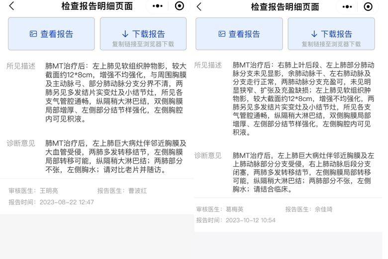 这次的CT报告看似大小没有变化,但是人体感非常不好。有胸水,并且一直需要医用氧接,时刻不能停,晚上睡觉不能平躺,只有靠着枕头睡。