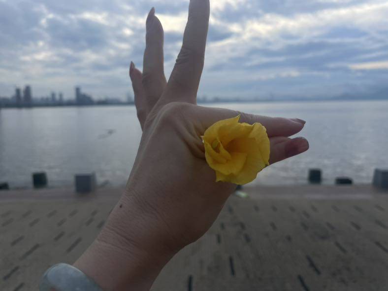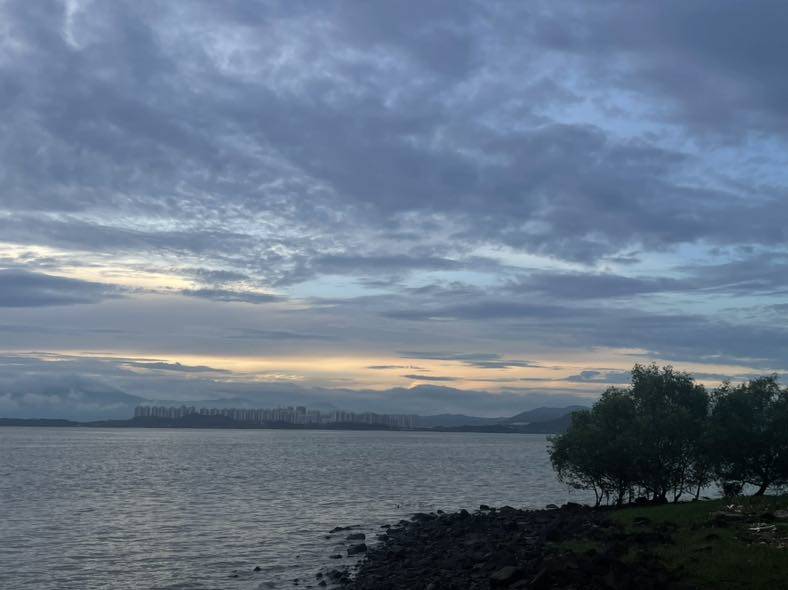 我真是爱折腾的人。昨天听到一起学习的同学们早晨骑车去了深圳湾,我觉得我也行,直接提议再早一点去深圳湾看日出。查了日出时间,如果骑车去五点前就得出发,实在太早,大家折中了一下五点半出发打车去深圳湾看日出。
