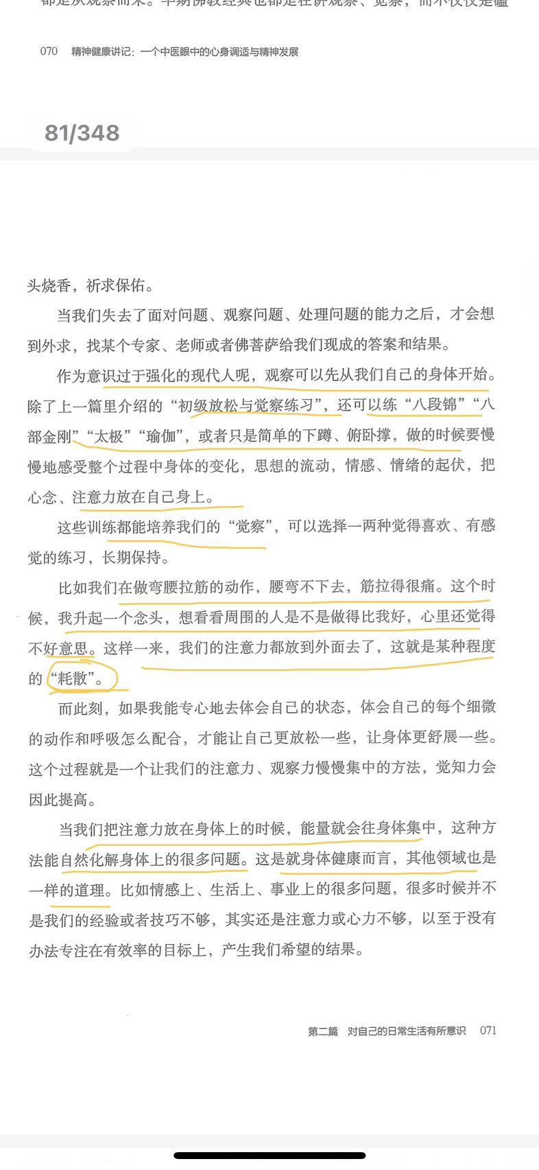 一开始我单纯的以为,八段锦只是一项舒筋活络的运动,直到看了中医李辛的《精神健康讲记》我才发现,八段锦他最重要的作用,是能够帮助我们增强内在的精神能量。