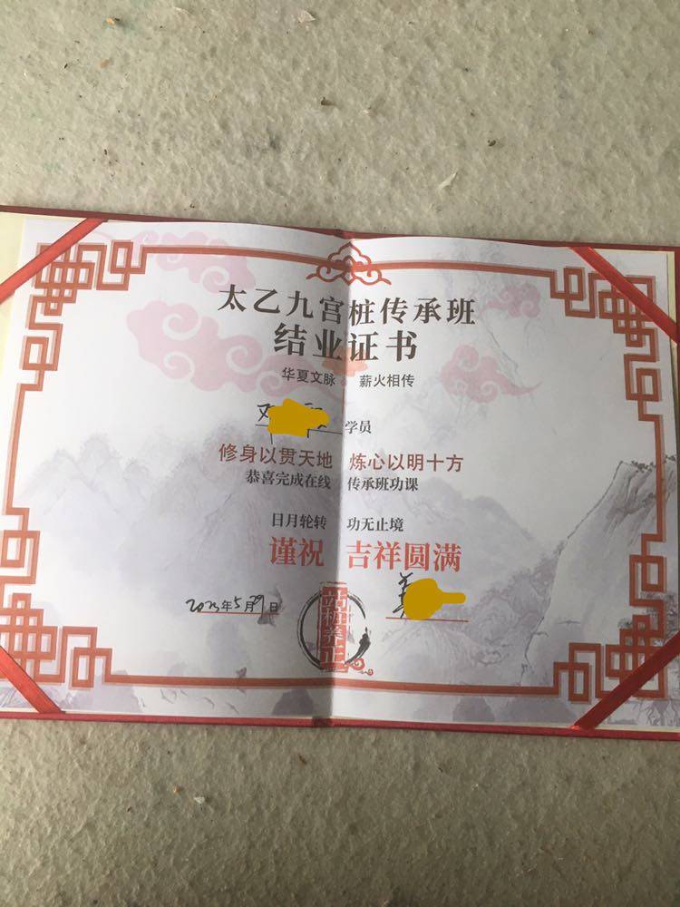 有了证书,自认是太乙桩的传承人了。哈!哈!哈!😄😄😄加油加油💪💪