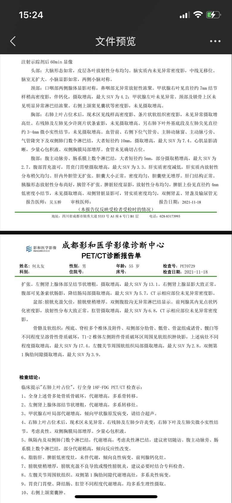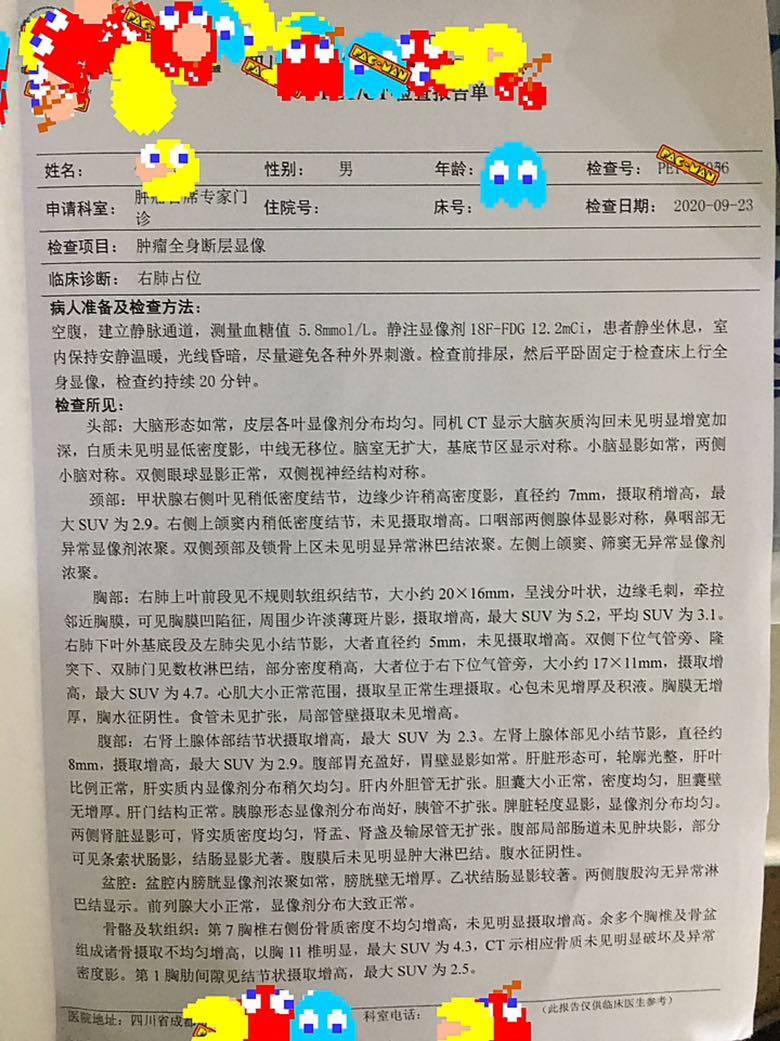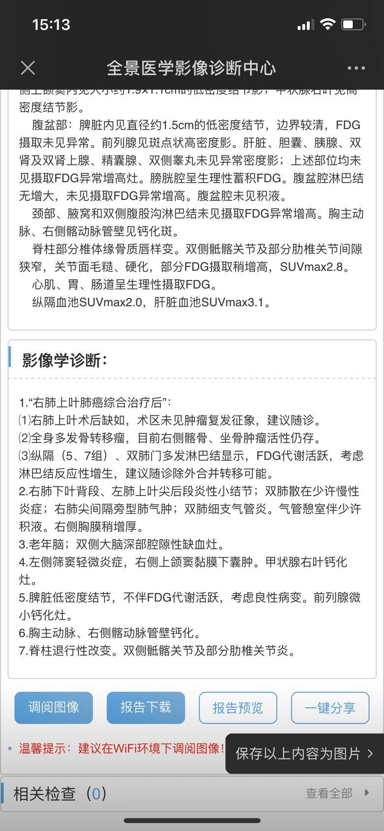 今天带爸爸早上7点就出发去了成都做派特ct,下午结果就出来了,确诊以后做了3次派特ct,20年术前一次,21年复发一次,23年今天cea不停上涨复查一次,看到结果后对比了前两次的,感觉变化不大,但是想不通为什么cea从1月开始不停的上涨,已经100➕了,吃奥西已经24个月了,cea上涨10个月了,难道耐药病灶还没呈现吗?爸爸说右腿确实比左腿没有力一点,软软的感觉,总感觉比左腿要短一点。这个月打了地舒单抗,已经一周多了,这次没有像以前一样每次打了以后都会发生骨头不舒服,难道地舒单抗已经没有作用了?下附三次的派特ct检查结果,请各位帮忙看看,现在该如何是好?