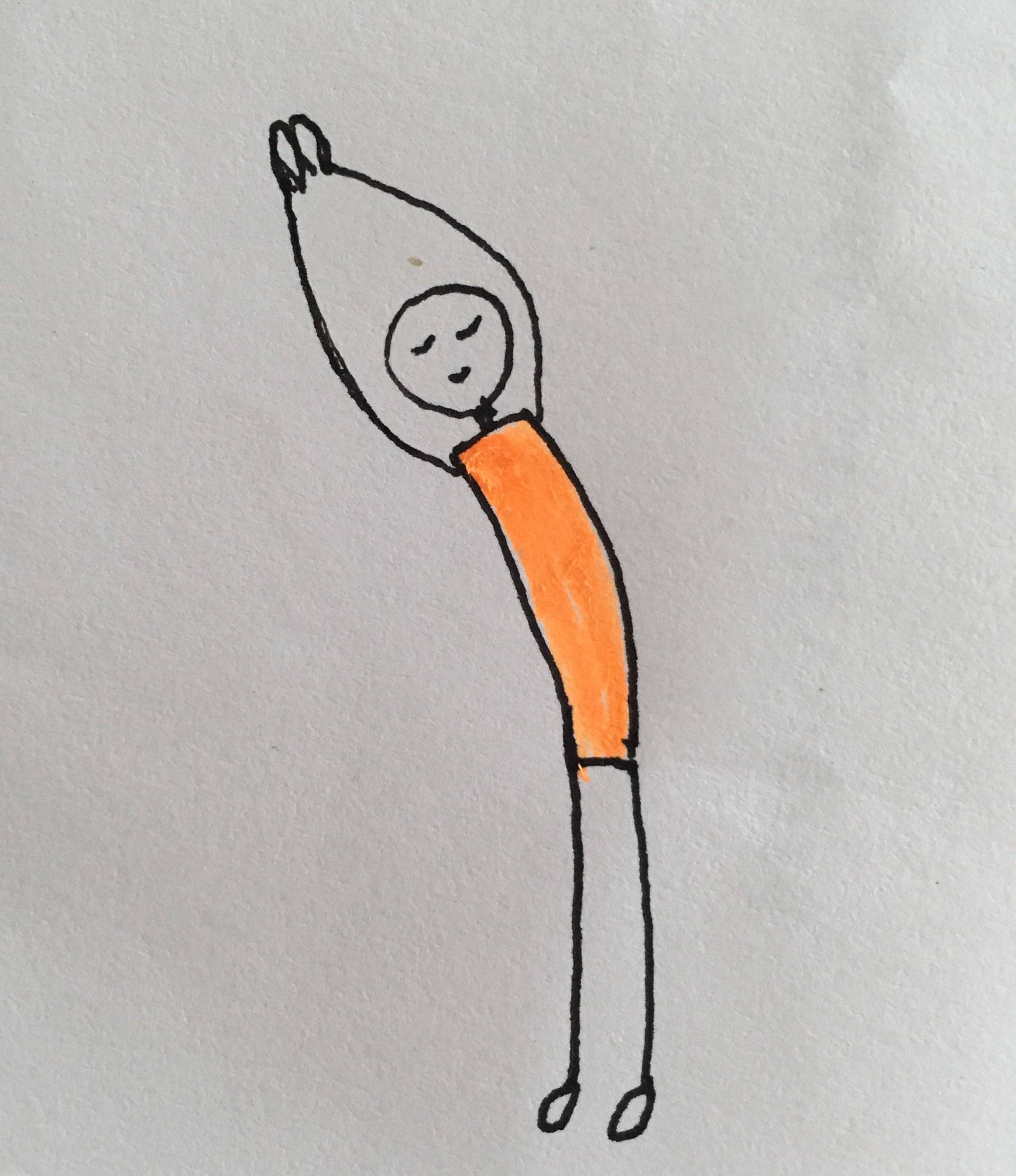 呼气:放下手臂,感受右侧腰和右指尖的温暖