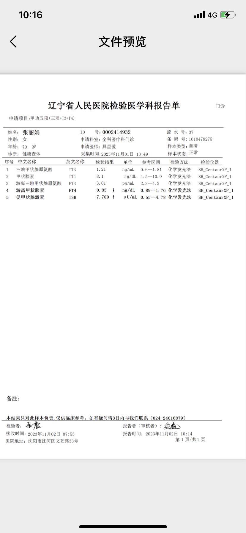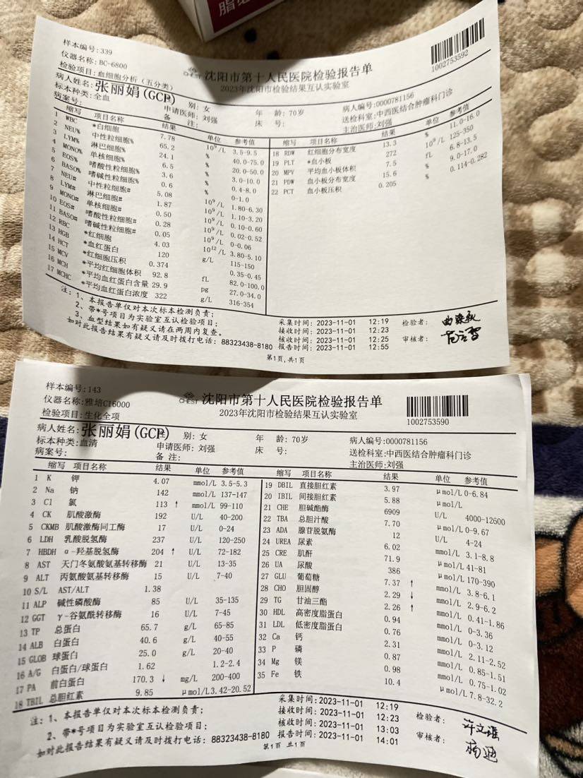 11月2日,第三十个疗程结束,各项指标平稳,继续保持
