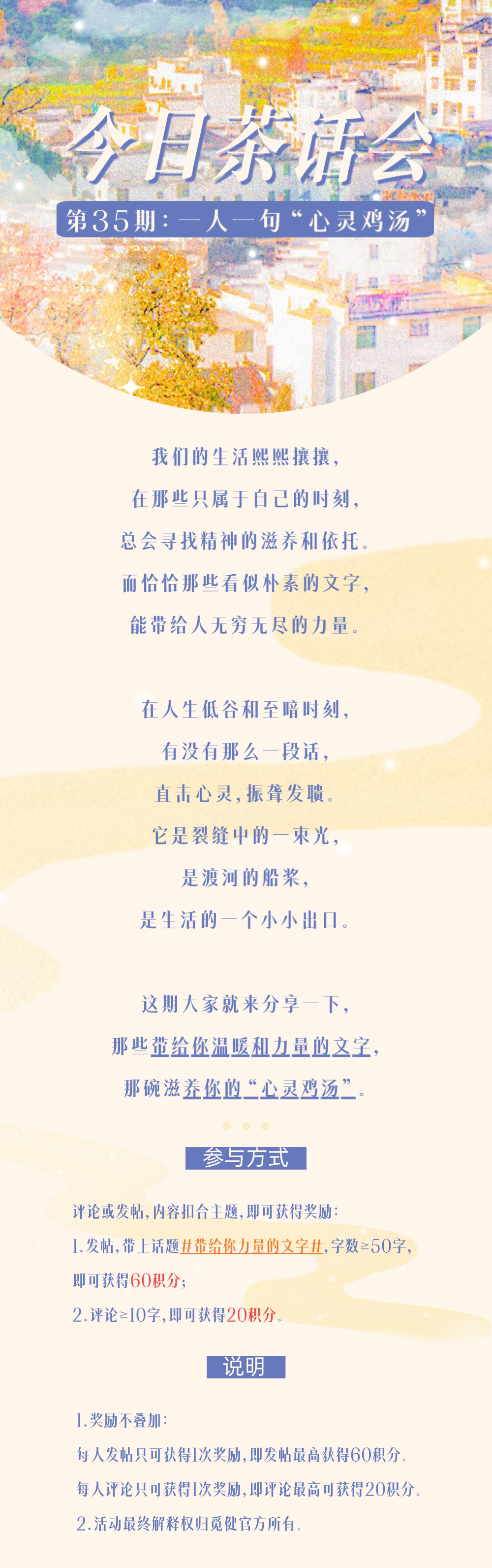 今日茶话会 | 第35期:一人一句“心灵鸡汤”