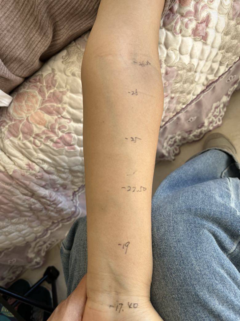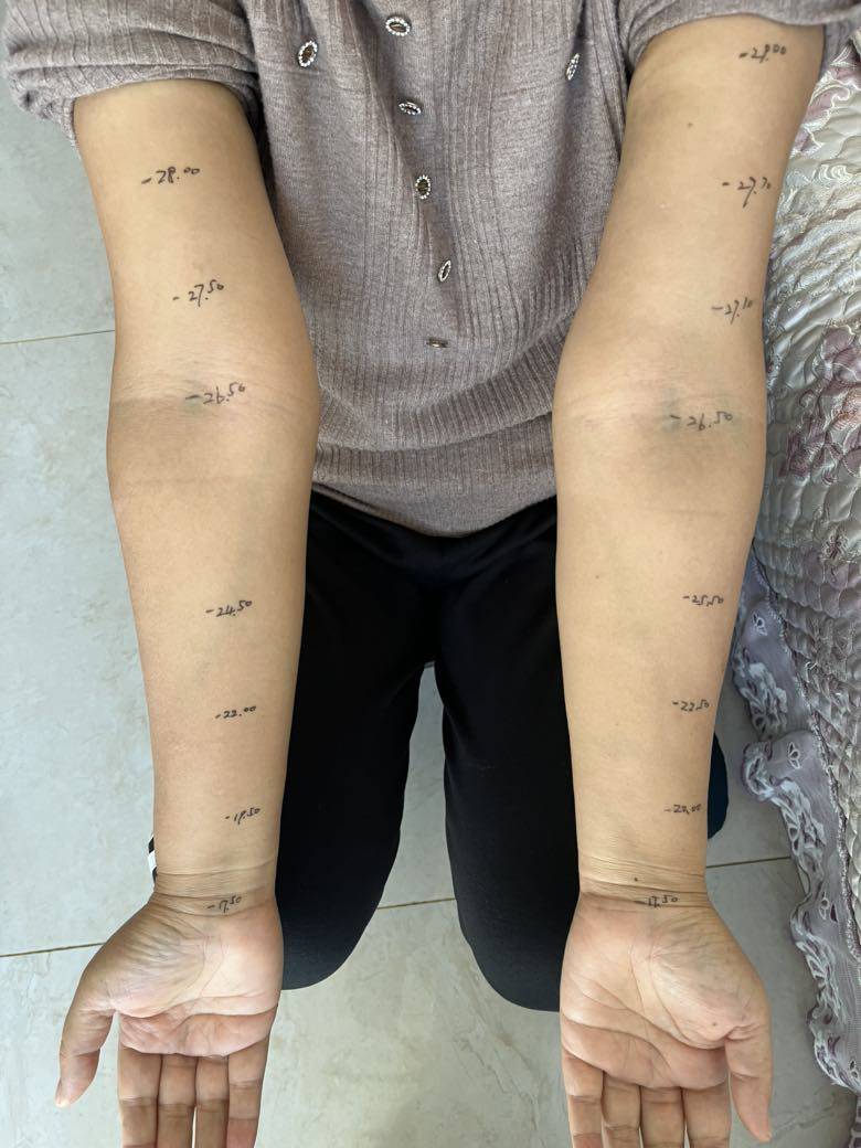 后来姐姐联系到我,我给她做了测量,确定这是个一期水肿,程度比较轻。和病友姐姐沟通后,就只是用手法引流,暂时没有使用压力制品,一次引流后,患侧就达到了正常水平,效果显著。病友姐姐也说,沉重感紧绷感都得到了缓解,感觉轻松舒适。
