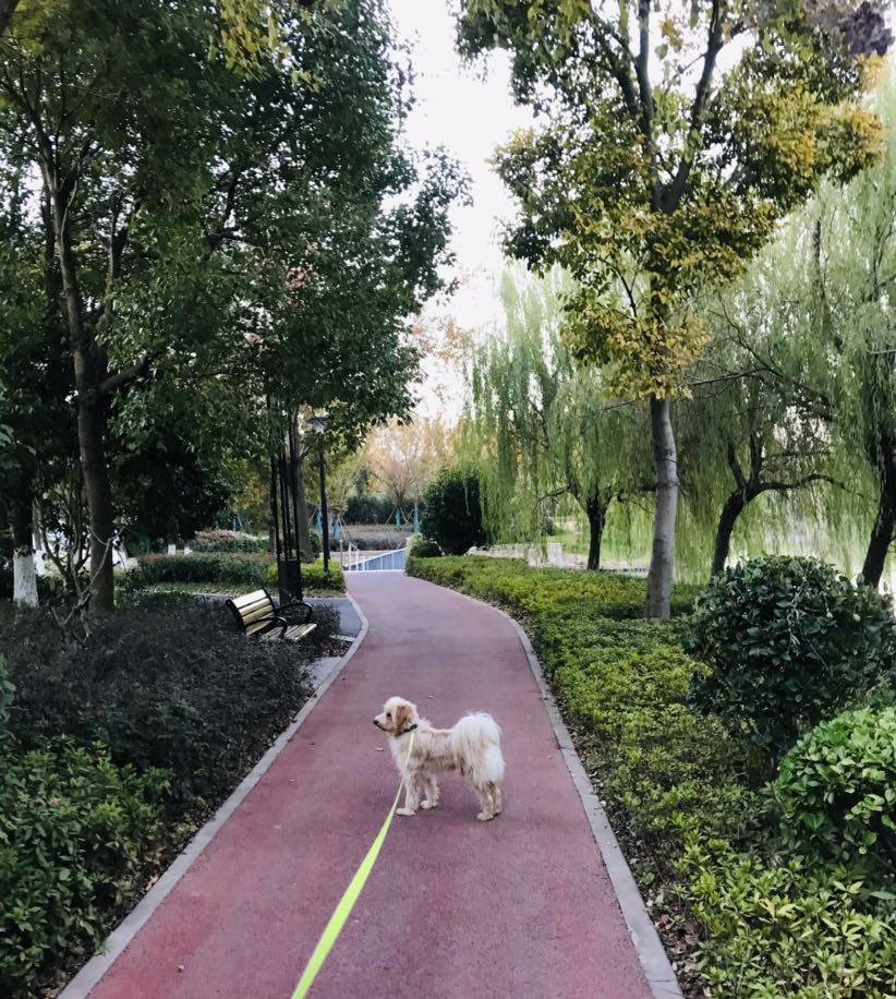 下午4点乖乖看着我换运动鞋,已经兴奋的不行不行的,围绕着不停打圈圈哈哈好不容易拴上狗绳开心啊,熟门熟路走出小区过马路直奔绿道,好像是它领着我哈哈!我家门口的沿河绿道早上锻炼的人比较多,下午人比较少,我很喜欢下午走绿道,感觉整个绿道上就我和乖乖!今天感觉精气神不错,一路上看见椅子也没有休息!狗狗很乖一路上基本上都是闲庭信步,快跑狂奔很少,感觉气还够用!回到家5点半都!开心!