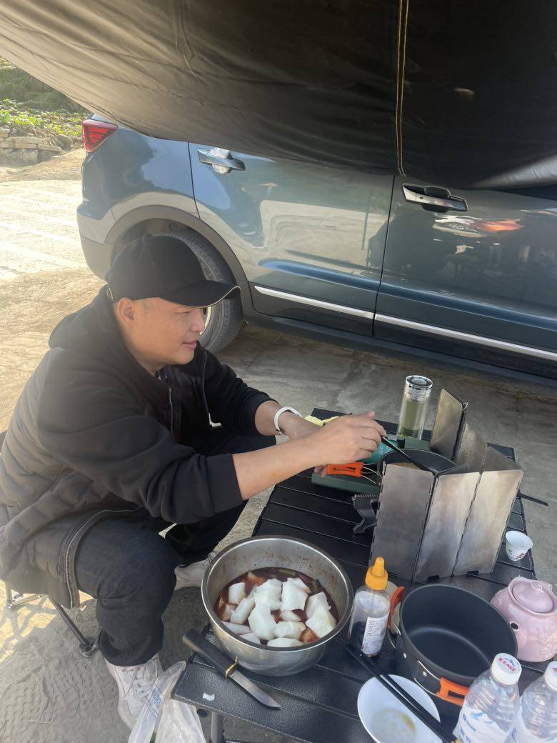 今天又是一个大晴天,怎能辜负这冬日暖阳,约了老公的战友两口子外出野餐。但先得把爸妈的饭菜做好,十一点半出门,找到我们上一次和朋友偶遇的水库上游,支起天幕,架上火炉,又开始过家家。