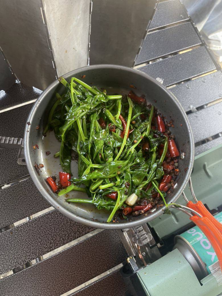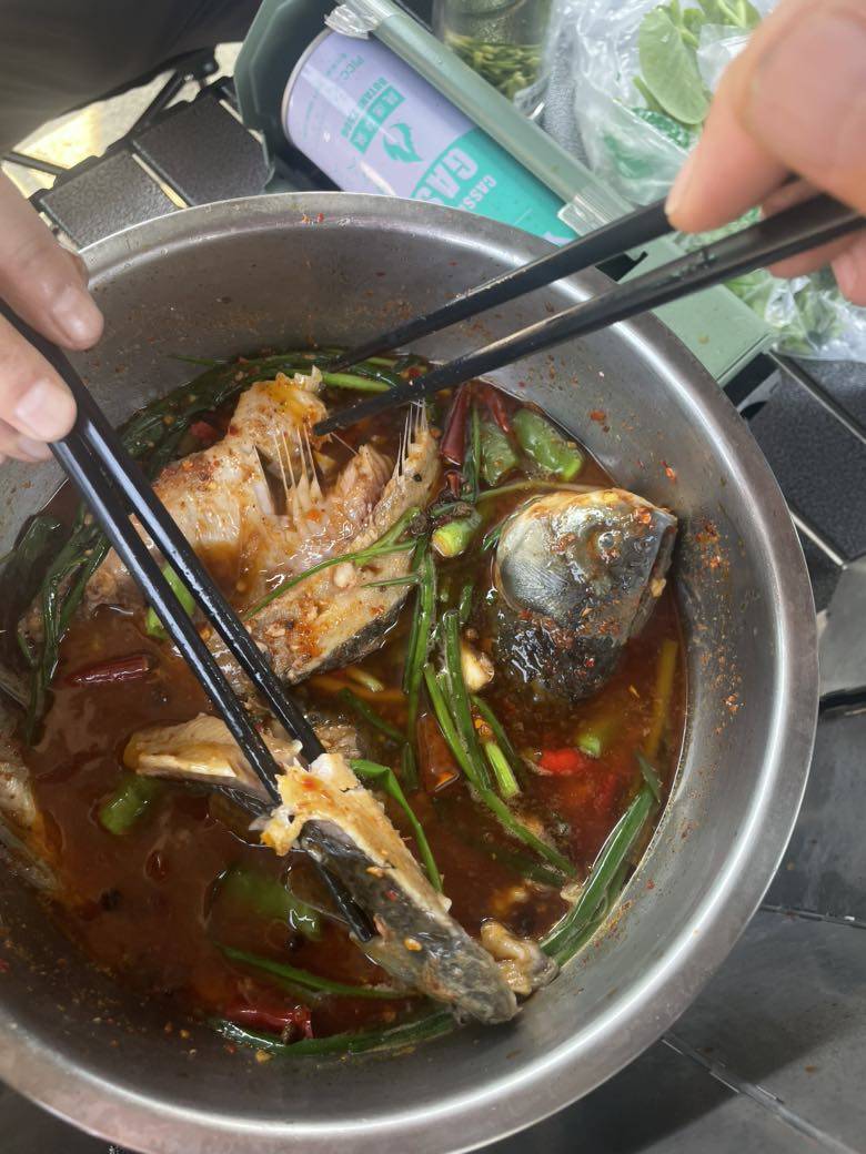今天的食材分外丰富,比平时升级不少,有菌肝、鲫鱼,东方甄选的鲜虾饼和烤肠,还有给当地农民买的豌豆尖和白萝卜,样样都鲜美十足,意犹未尽。