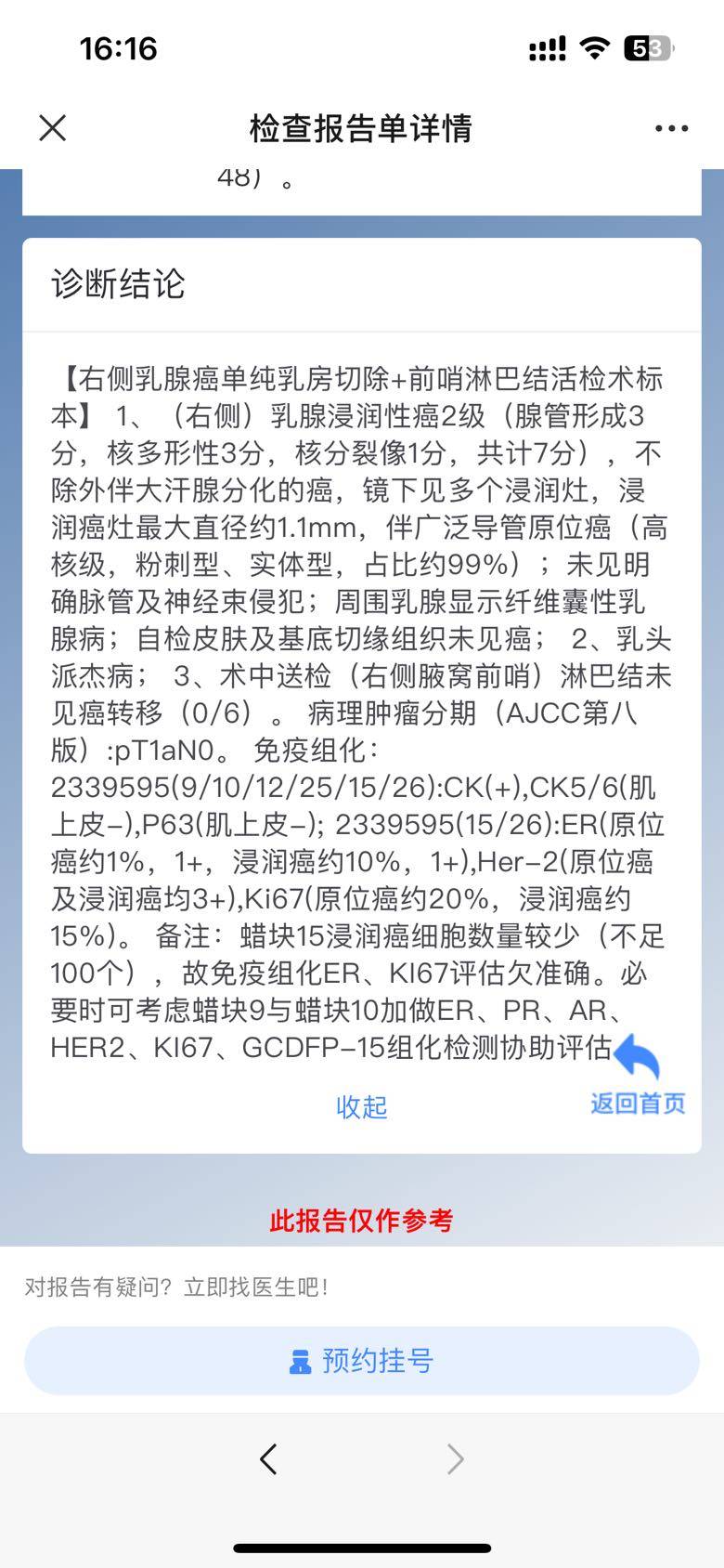直率的长颈鹿有her2指标3+是要做靶向治疗的,ERPR还要根据更多的样本确定。估计医生还会再加做实验确定治疗方案。