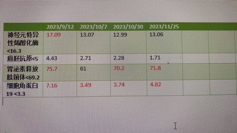 问题: 爸爸在化疗免疫治疗期间的癌胚抗原持续下降 但是其他几项指示都在缓慢上升。这是为什么?