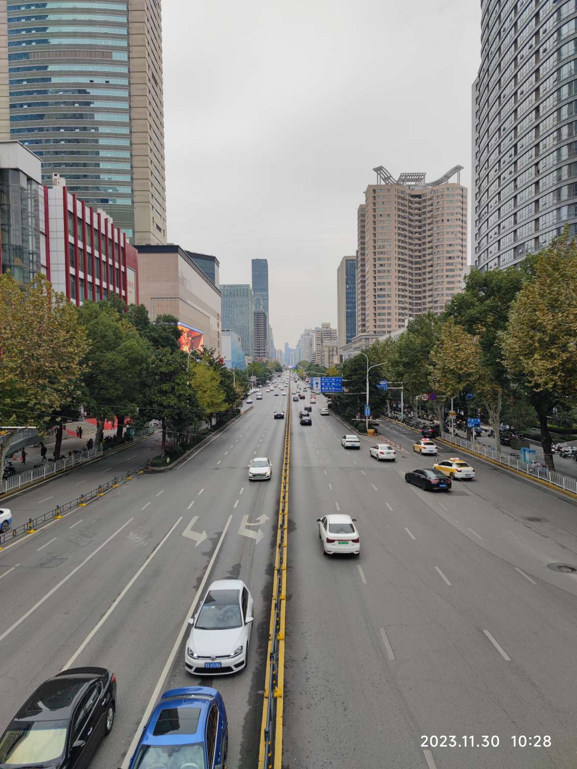 今天因为有其他的事情,没有到河边走路。早上去中南路去办了点事,站在繁华的中南路天桥上,可能是天气阴沉的原因,马路上的走不是太多,随手拍拍照。