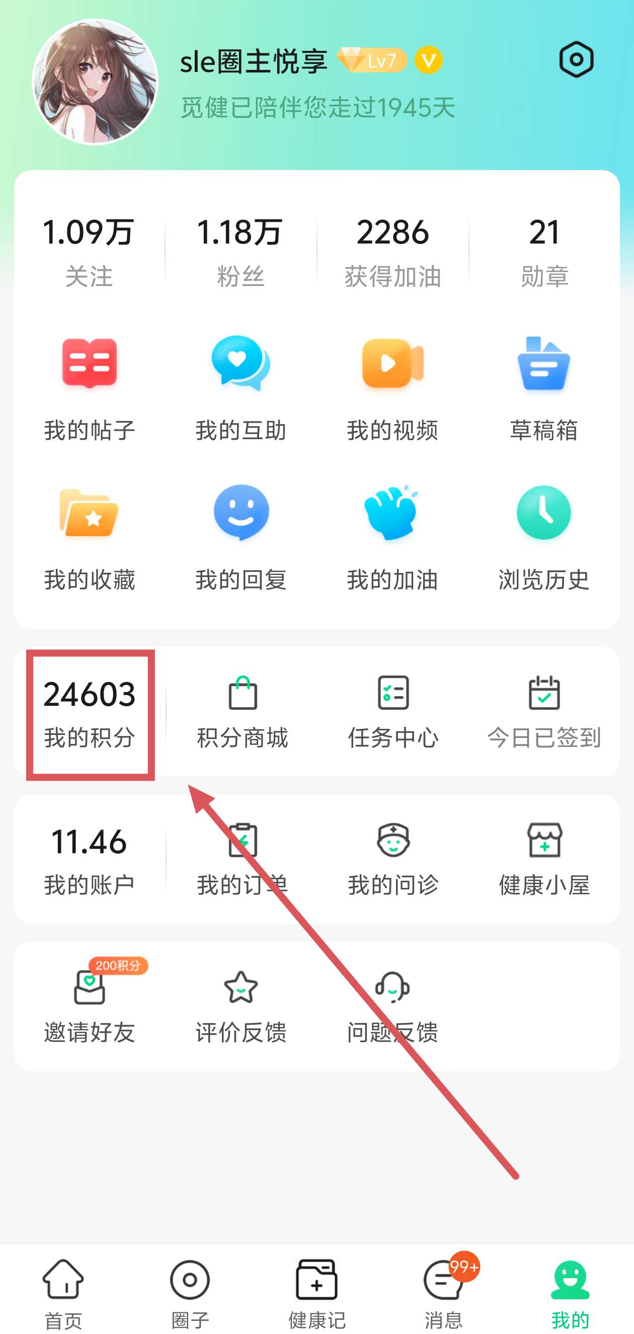 在【我的积分】页面就可以看到啦~