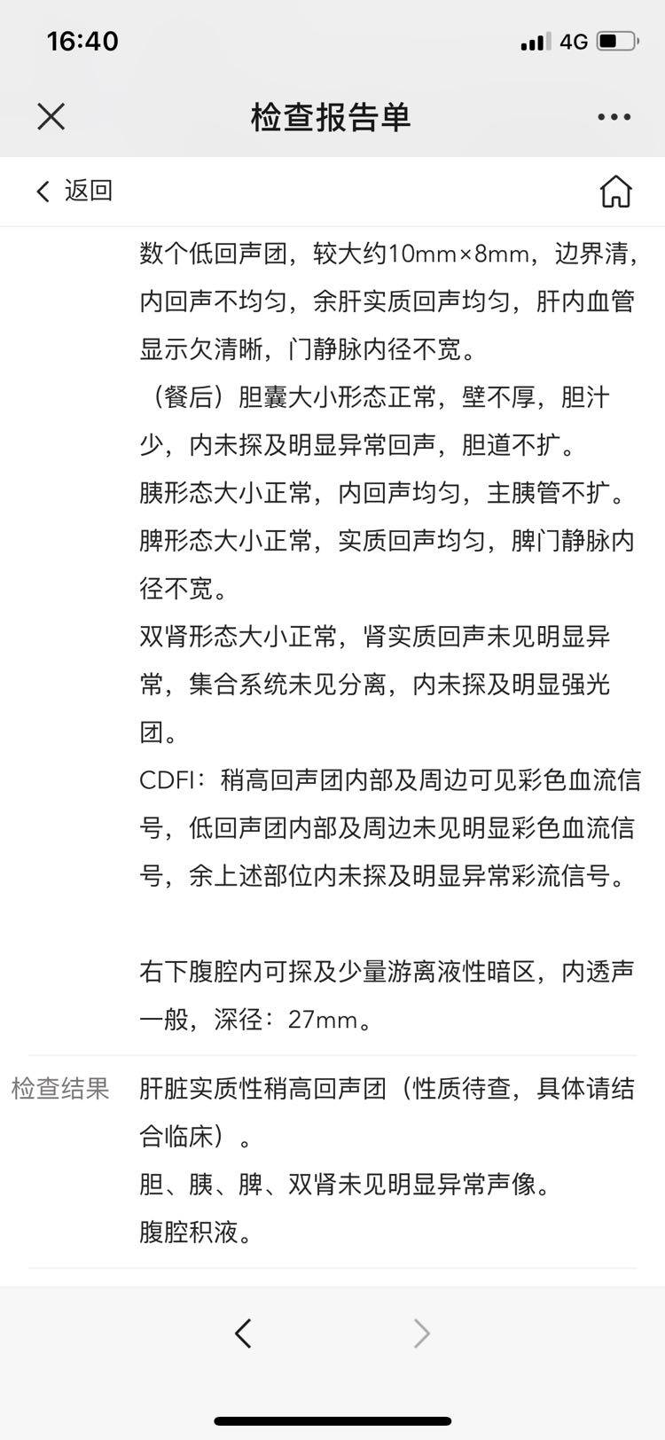 我腹胀不舒服,去医院做了个B超。医生说腹水不严重。尽快安排我入院评估加化疗。