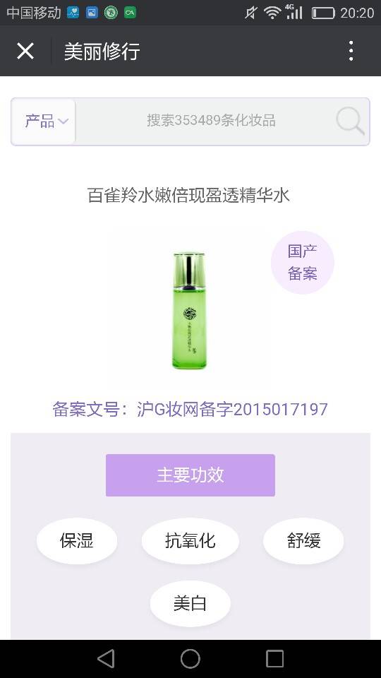 公众号名字是美丽修行,打开后点下方一排的第一个妆品查询。