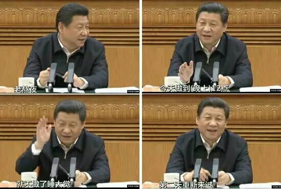 去年,习近平主席在人民大会堂主持召开座谈会,同200余名县委书记研修班学员畅谈交流,劝告年轻人不要老熬夜。他还谈到了自己年轻时熬夜的往事。他说:“那个时候我年轻想办好事,差不多一个月大病一场。为什么呢?老熬夜。经常是通宵达旦地干。最后感觉不行,这么干也长不了。(要)先把自己的心态摆顺了,内在有激情,外在还是要从容不迫。因为我当时是看书还是谁跟我讲了一句很智慧的话,说你手里攥着千头万绪,攥着一千个线头,但是一个针眼儿只能穿过一条线。后来我就想,今天(晚上)做到12点,就不做了,睡大觉,第二天重新来过。”