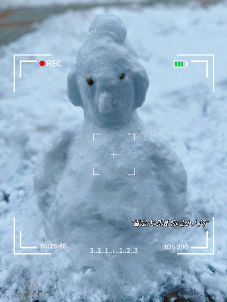 持续低温,昨天堆的四不像丑萌丑萌的小雪人今天还在。