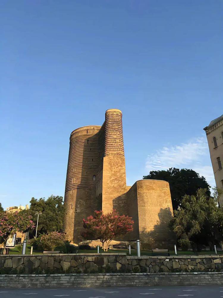位于巴库老城中心的少女塔,比邻里海,是12世纪所建的汉王宫殿建筑群的一部分,全塔高27米,8层圆柱状,内有一口水井,据说井水四季清凉,每层可容纳50人 ,塔上每层窗口都有防御措施,可亲切滚烫的熔铅或燃油的火把,抵抗外敌的进攻。