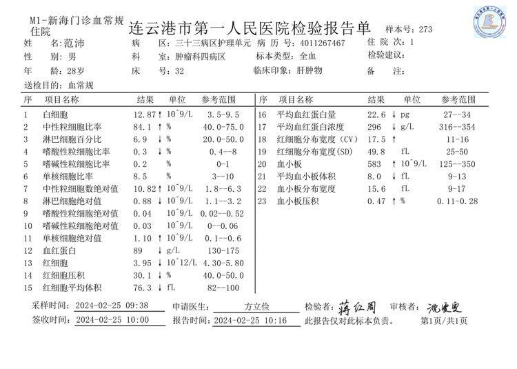 24年2.29号上午10点出发区保险公司买交强险(我有一台蓝色几千块钱的09年嘉年华转手给新买家,换钱治病,跑了四五家终于在2点钟买成功),出发去连云港市第一人民医院高新院区切病理切片(南京鼓楼医院实验室必须要他们自己的载玻片,我们带回来了,要切15片,费用450,说办理大病救助能报销,又去办理大病救助)挂号办理麻本,申请了一个月吗啡片的使用量(6盒60片)办理好麻本,大病救助,吗啡片和病理切片缴费143,报销885,总费用1028。拿好切片,顺丰寄回南京重新做he2表达,复测her2是否3+。晚上回到乡下家里收拾对象和我自己的行李。出门出来找小宾馆住。