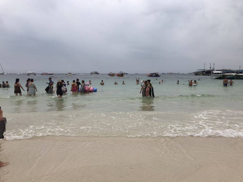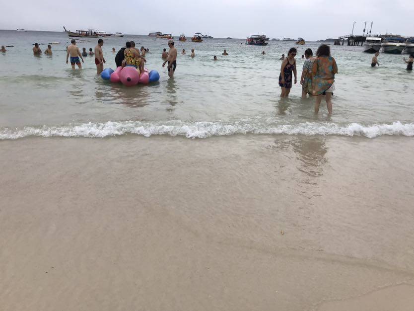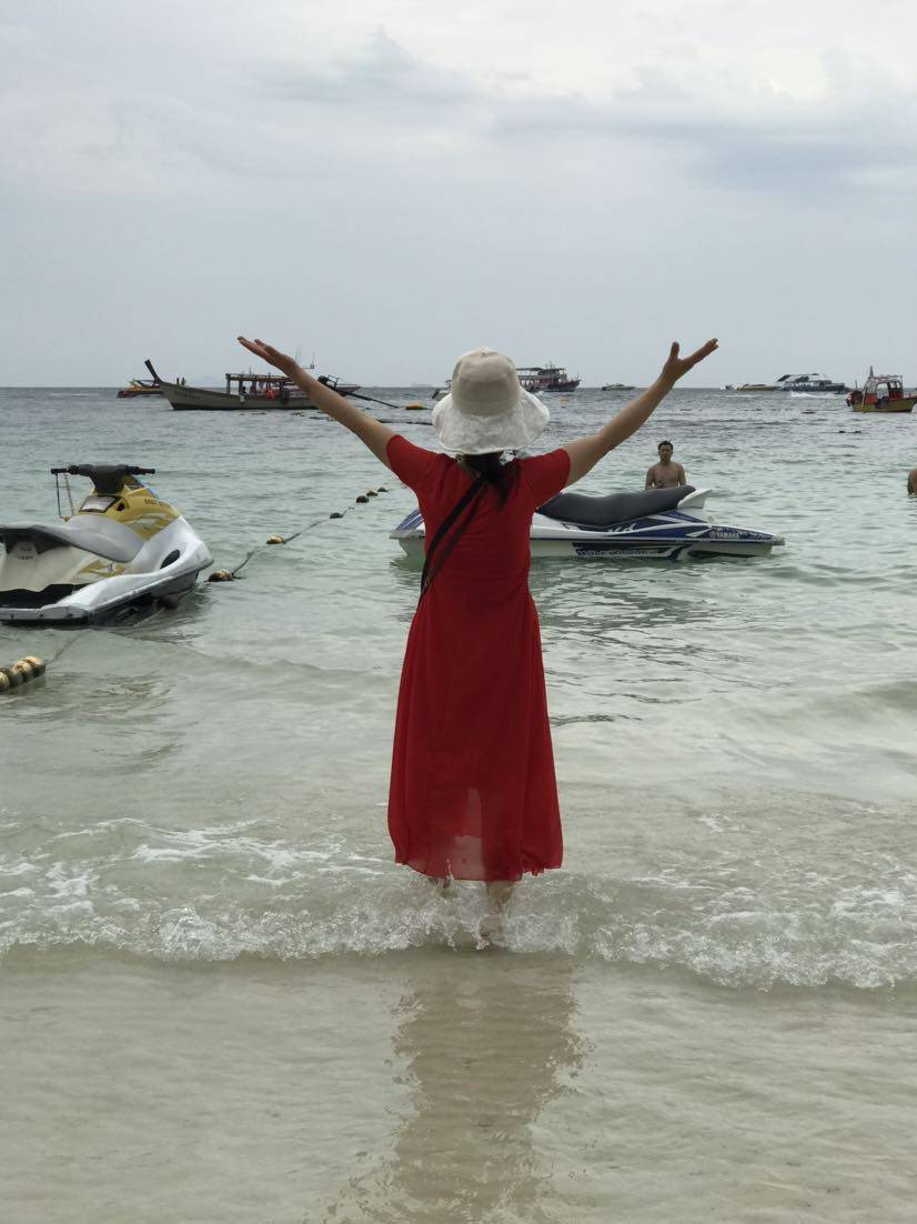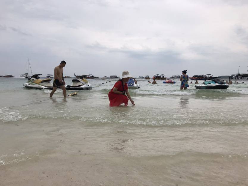 今天在泰国芭提雅海边玩、参加了很多项目,特别是我超越了自己、一个不会游泳的人居然参加了海底行走的项目、潜入海底欣赏海底世界,为自己感到自豪!我们还座快艇冲刺在宽阔海面上、飞溅起浪花、太壮观了、当时导游带头和我们合唱张雨声的“大海”时,心情太激动了、久久不能平静!