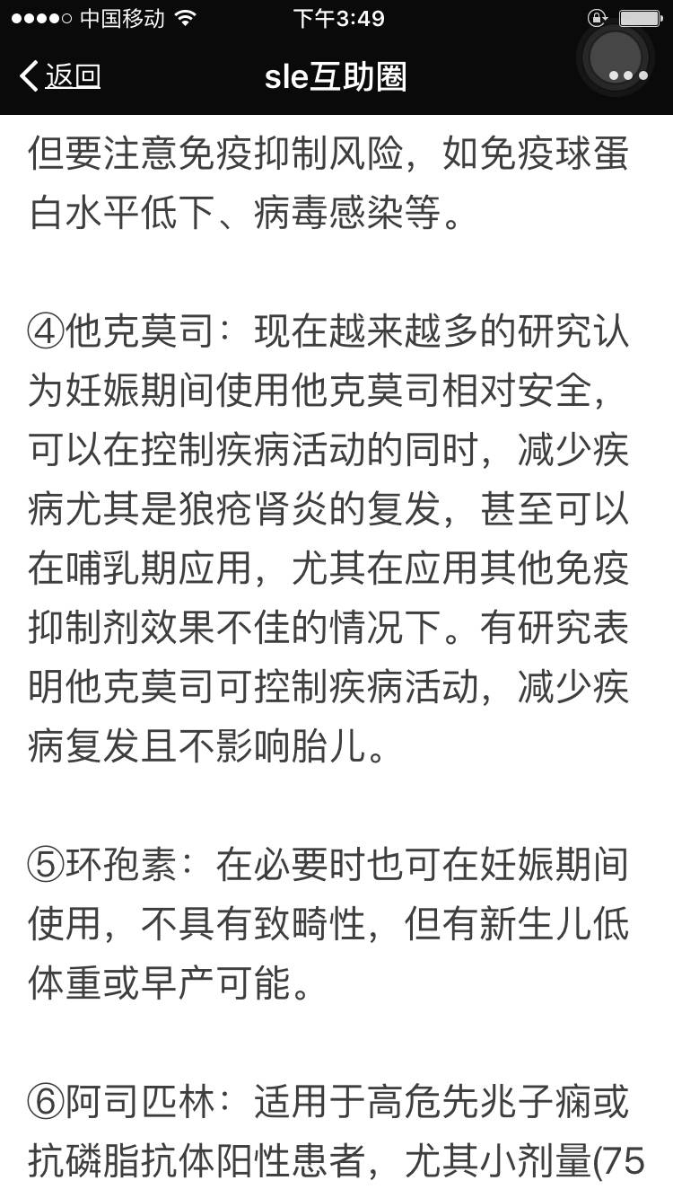 我早就咨询过了我的主治医生,他说怀孕期间可以吃他克,有个肾移植的一直在吃,还生下了健康的宝宝,所以我很安心