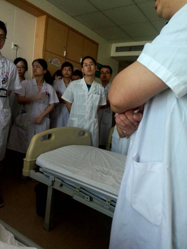 我那时候在长沙住院也是这样的,全院会诊,两个床铺的病房挤不下,一波一波来的