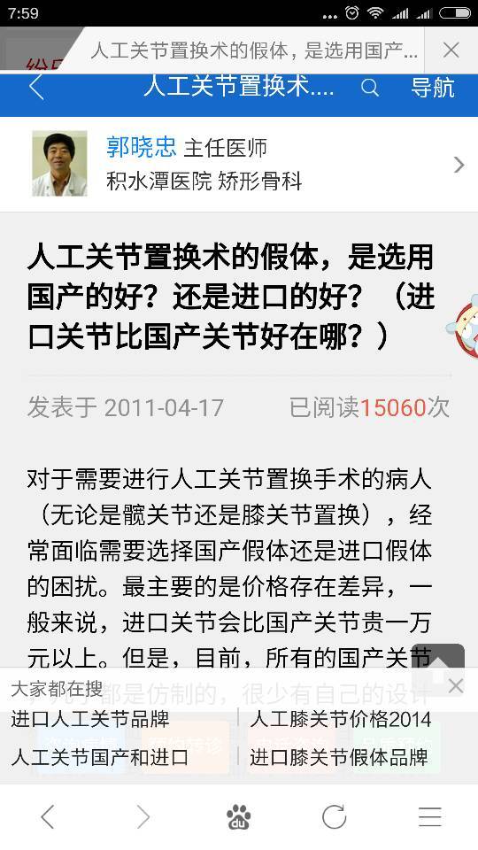 置换股骨头选国产的好还是进口的好,我就是他手术的。