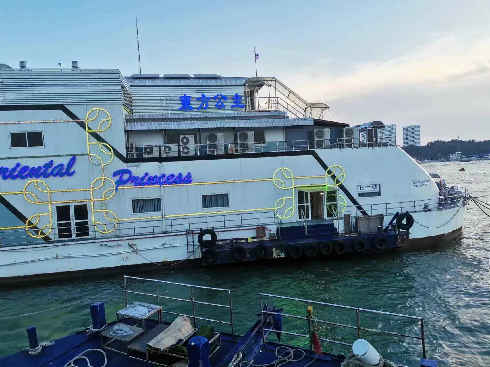 芭提雅海的夜晚,灯火通明很是热闹,特别是“东方公主号”邮轮,游客登上公主号可以饱览暹罗湾夜景,我用手机抓拍了一下,跟团走就是赶时间,游客太多要跟紧队伍,忽忙拍了点小视频,请觅友们一起欣赏吧。