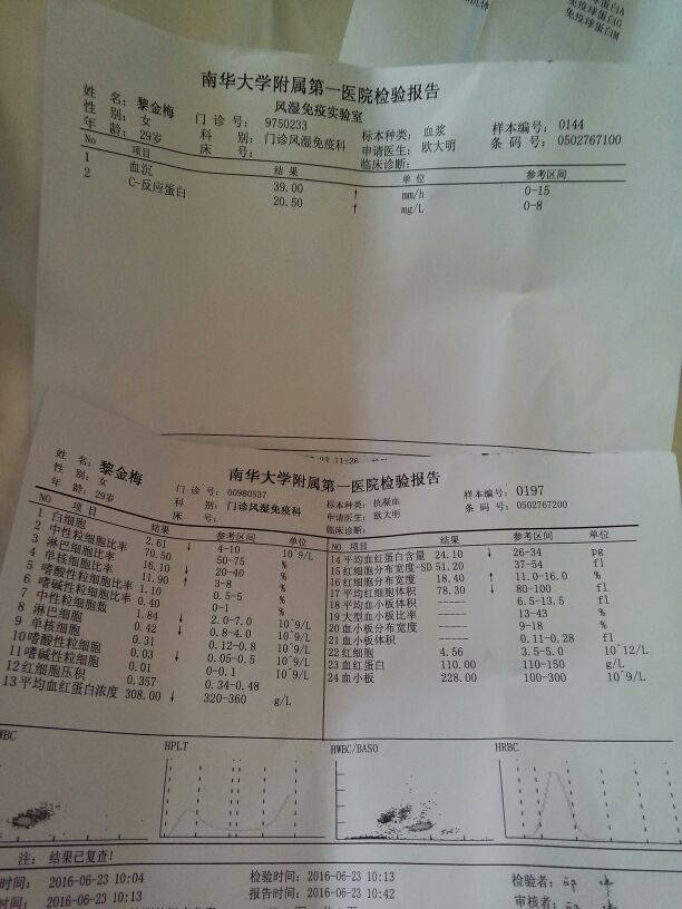 —笑而过医生还给微信好!南华附一真不错!血沉有点高,少吃辣椒和油炸的!坚持!一切会好起来!