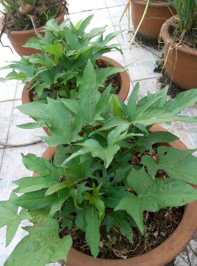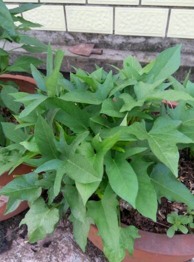 长得很好,薯叶可以吃了。